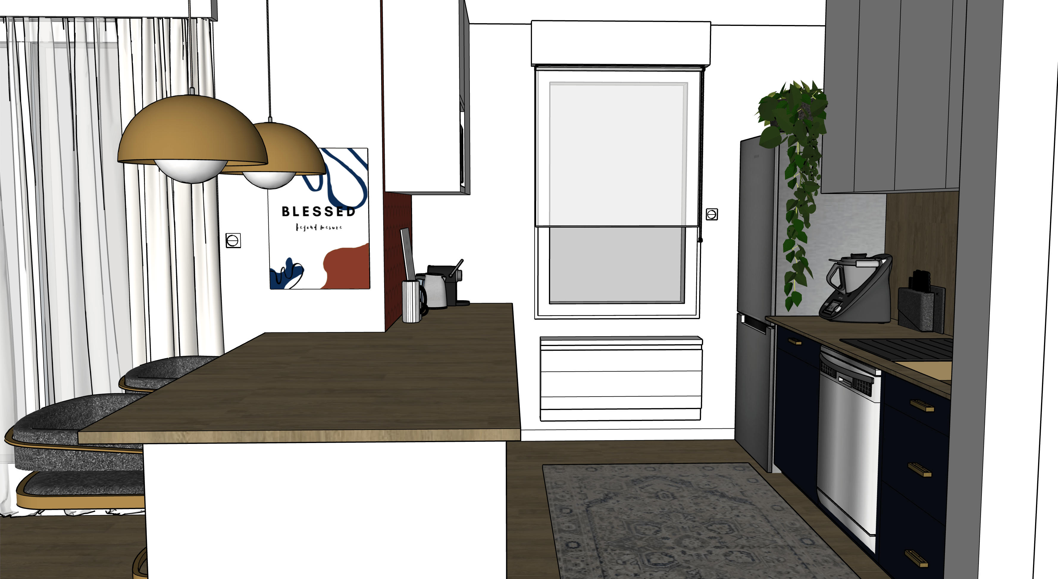 Le projet consiste à créer et disposer de manière optimale plusieurs fonctions dans le séjour de cet appartement de 3 pièces situé en France voisine. Une entrée fonctionnelle, un bureau et un coin musique sont à intégrer dans une pièce d’un peu plus de 30 mètres carré en incluant la cuisine déjà installée.